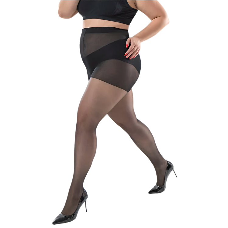 Discover these tights designed to enhance your legs with elegance and comfort. They offer a soft and lightweight feel, perfect for everyday wear or special occasions. Their fabric provides a natural and sexy finish, ideal for pairing with any outfit. Thanks to their super elasticity, these plus-size tights (up to 120 kg) fit perfectly, providing comfort without feeling tight. Perfect for those who seek a sophisticated style without compromising on comfort. They are the must-have accessory for a striking look.