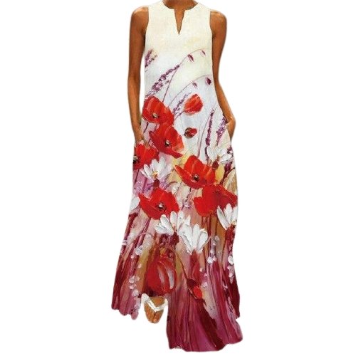 Long Dress. V-Neck. Sleeveless. Multicolored.