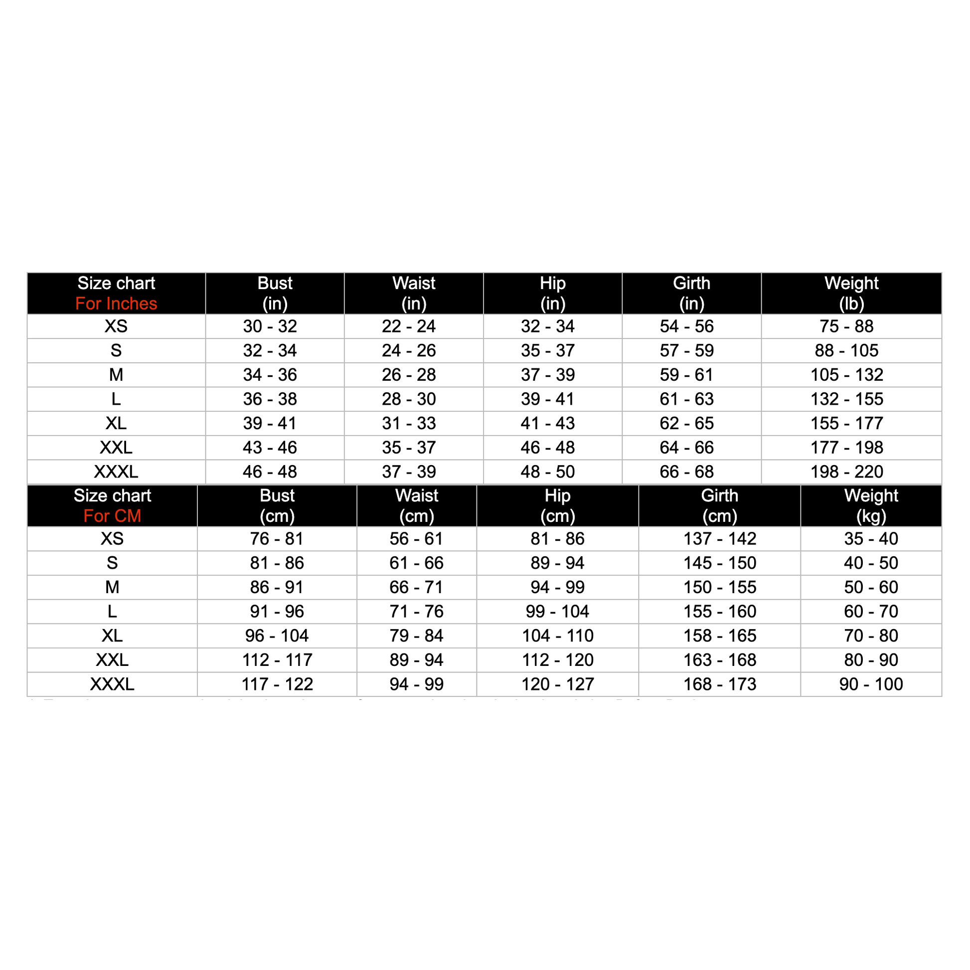 IMPORTANT: Please, check the size chart before purchasing.