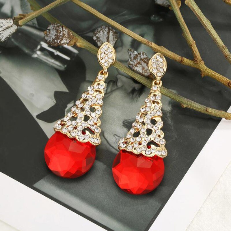 Rhinestone Crystal Big Water Drop Shape Clip on Earrings.