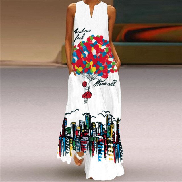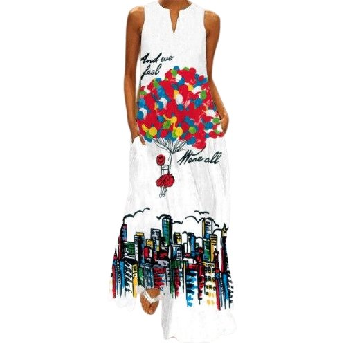 Long Dress. V-Neck. Sleeveless. Multicolored.