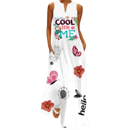 Long Dress. V-Neck. Sleeveless. Multicolored.