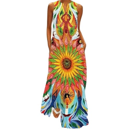 Long Dress. V-Neck. Sleeveless. Multicolored.