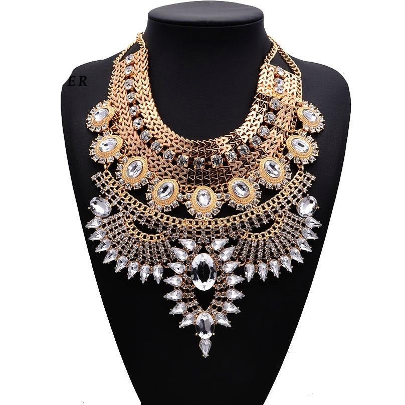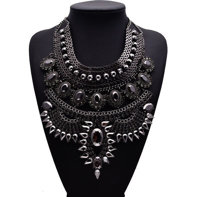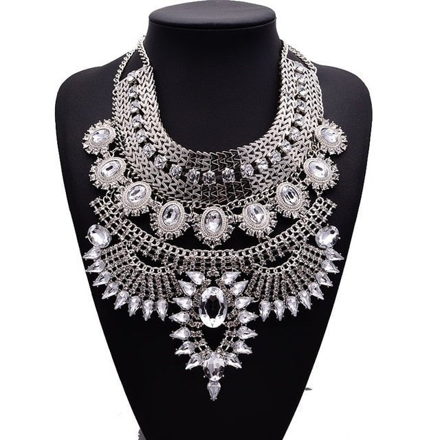 Handmade Pendant Bib Statement Vintage Crystal Necklace.