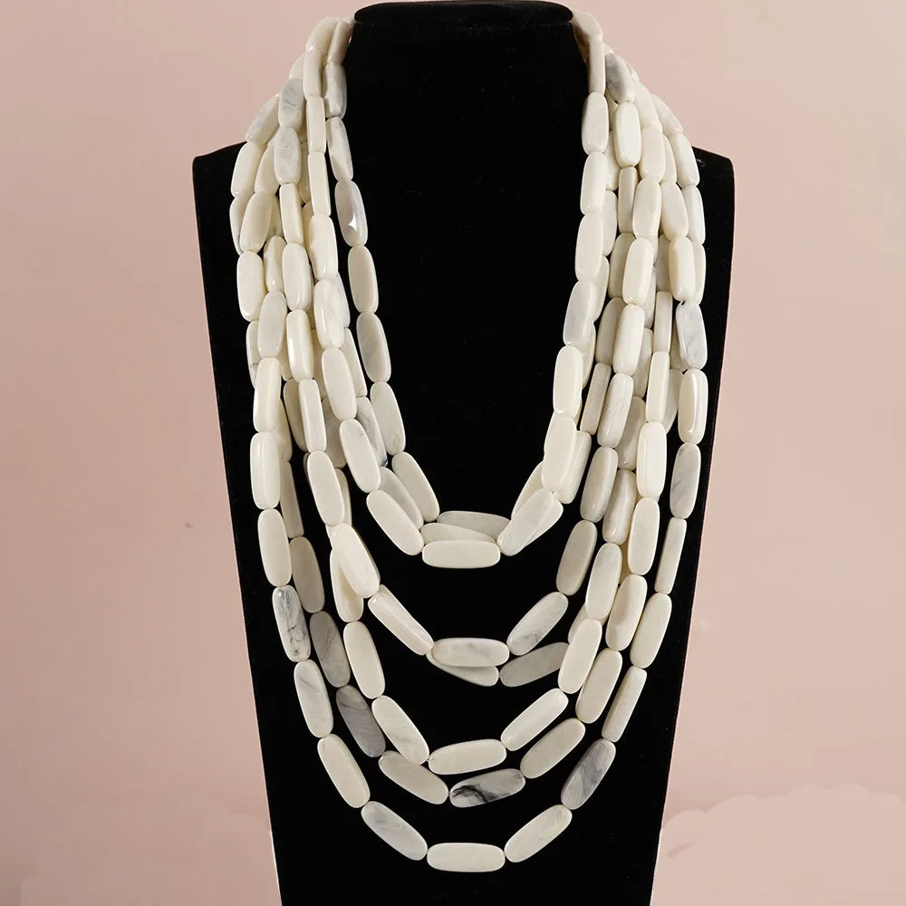 Experience the bohemian charm with the stunning Handmade Round White Blue Necklace Queen Mia. Adorn yourself with this vintage statement piece, featuring a multi-layered design with intricate beads, that will add a touch of African flair to any outfit. Perfect as a thoughtful gift for a loved one or to treat yourself to something special.