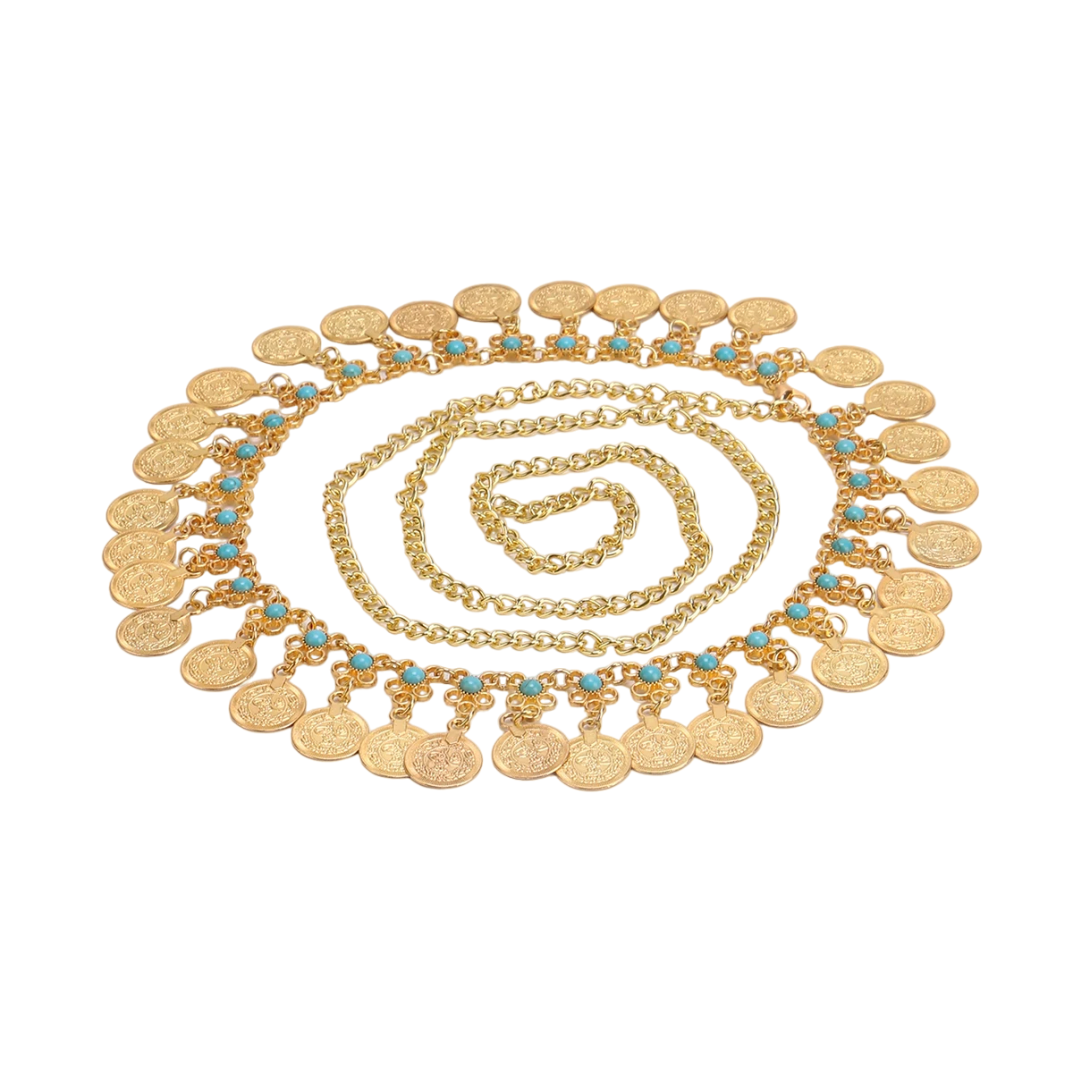 Find the perfect belt to give a unique touch to your waist. Our belly dance retro coin thin belt with decorative chain is loved by drag queens.