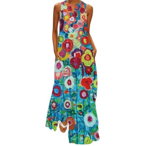 Long Dress. V-Neck. Sleeveless. Multicolored.