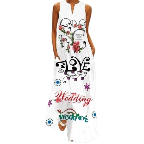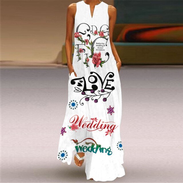 Long Dress. V-Neck. Sleeveless. Multicolored.