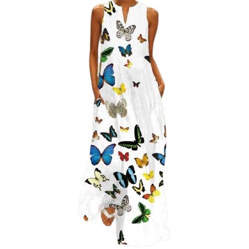 Long Dress. V-Neck. Sleeveless. Multicolored.