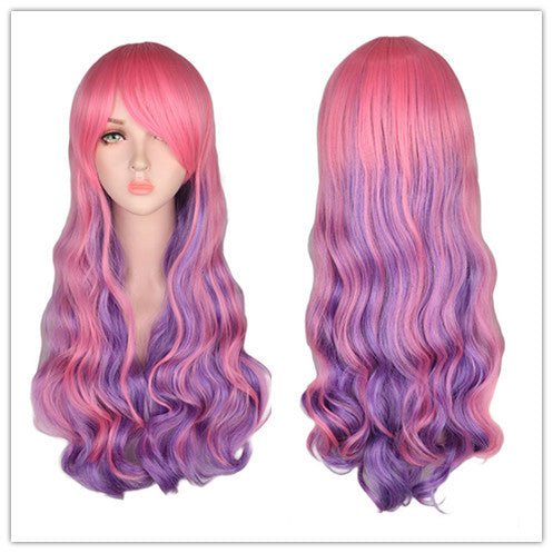 Handmade long wavy synthetic hair wig in dual color pink and purple.